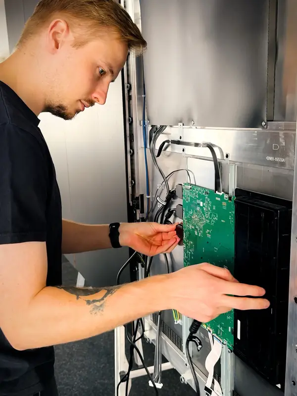 Ergänzt durch sensorbasierte Interaktion, Gebäudetechnik-Anbindung, Dokumentation und Monitoring entstehen Systeme, die im Alltag stabil laufen und komplexe Technik im Hintergrund halten.